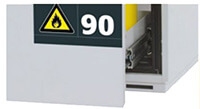 A variety of chemical storage cabinets interior equipment is available, such as a bottom collection sump, drawers, and height-adjustable shelves. You can read more about the chemical safes accessories options under the products description.
